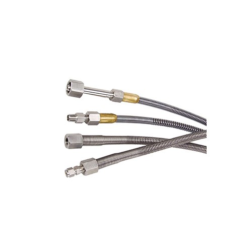 高压软管最高使用压力为3000psig,用于钢瓶和减压器的联接,也可用于汇流排系统。